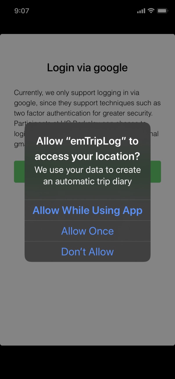 The emTripLog application requires a Gmail account for log-in. If you are not comfortable using your Gmail account, you can create a fake account just for this study.