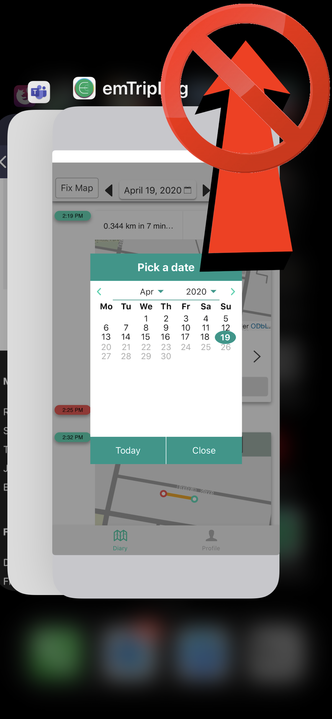 - Please leave the emTripLog app running in the background, meaning that you should not quit the app as it won’t be able to track your location at all. 😟